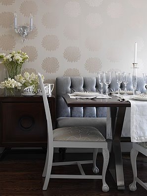 I love the way she mixes patterns in wallpaper and fabric so effortlessly...